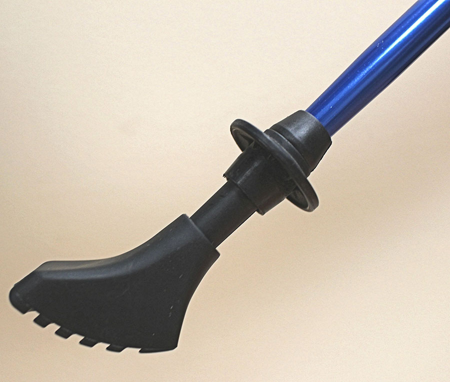 The Rubber Boot Tips is to point backwards while holding the pole in the walking position. The Boot Tip stays on by pressure fit and the adhesiveness of the rubber against the pole.